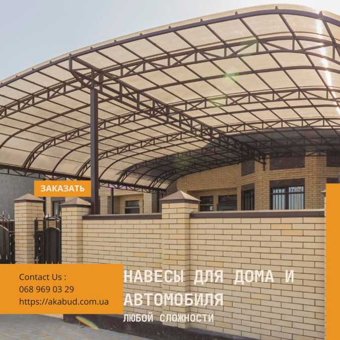 Навіси для авто, тераси, зони відпочинку; арочні, односхилі, двосхилі; полікарбонат, метал, кування. Автонавіс Кривий Ріг. Замовити, купити навіс на авто. Автомобільні навіси у Кривому Розі. Автонавіси Кривий Ріг. Виробництво навісів від компанії Akabud.