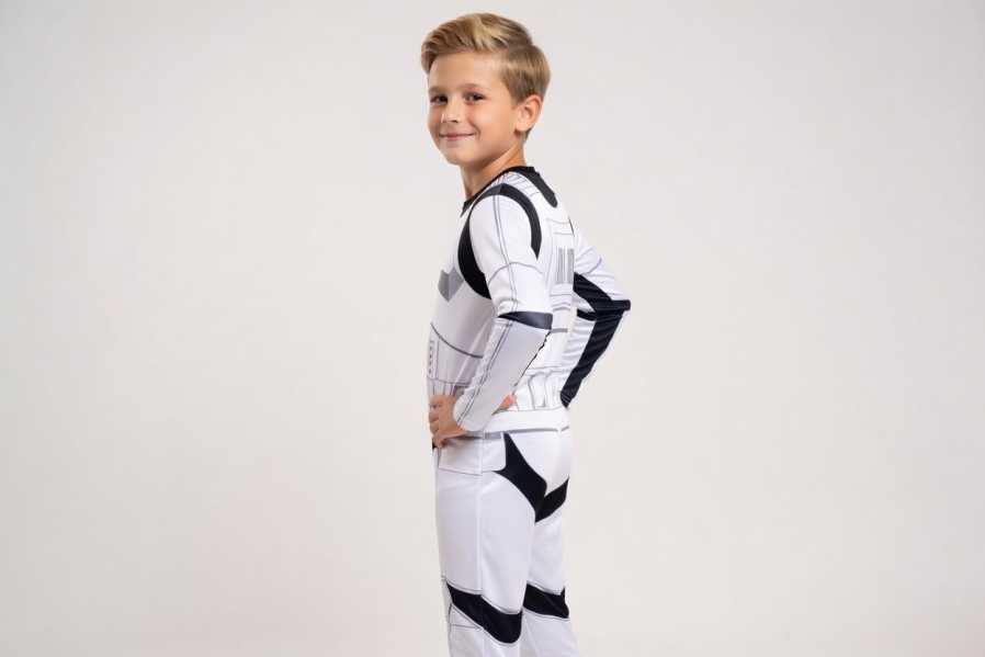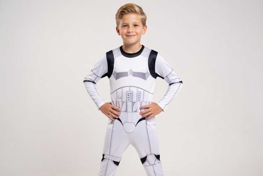 Білий комбінезон з деталізованим принтом броні повторює кожен елемент екіпіровки імперського солдата. Від панелей і поясу до захисних елементів — все, як у фільмі. Офіційна ліцензія Star Wars гарантує, що ти виглядатимеш, ніби щойно вийшов зі зйомочного майданчика.
